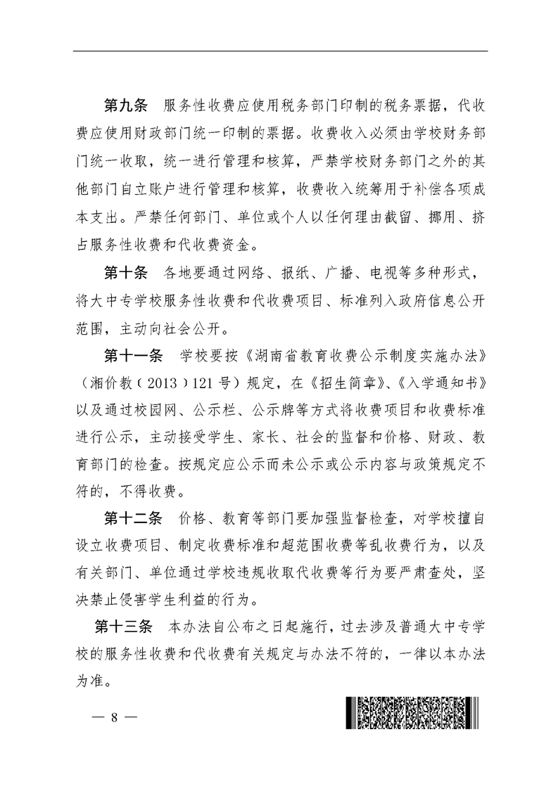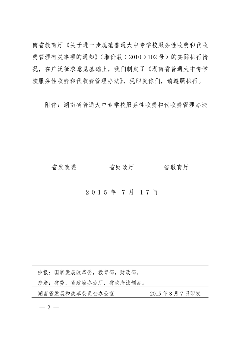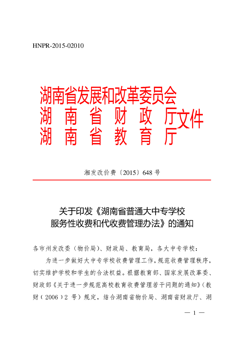 湘发改价费[2015]648号-关于印发《湖南省普通大中专半岛平台服务性收费和代收费管理办法》的通知