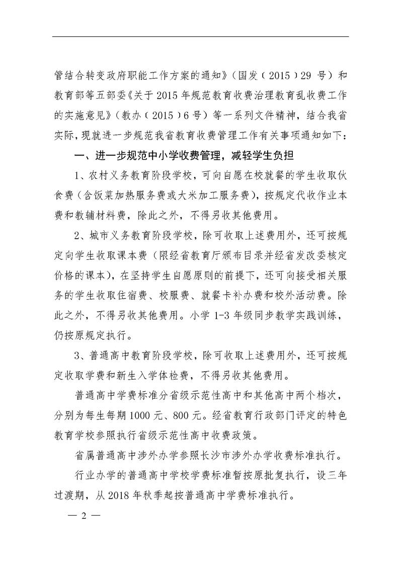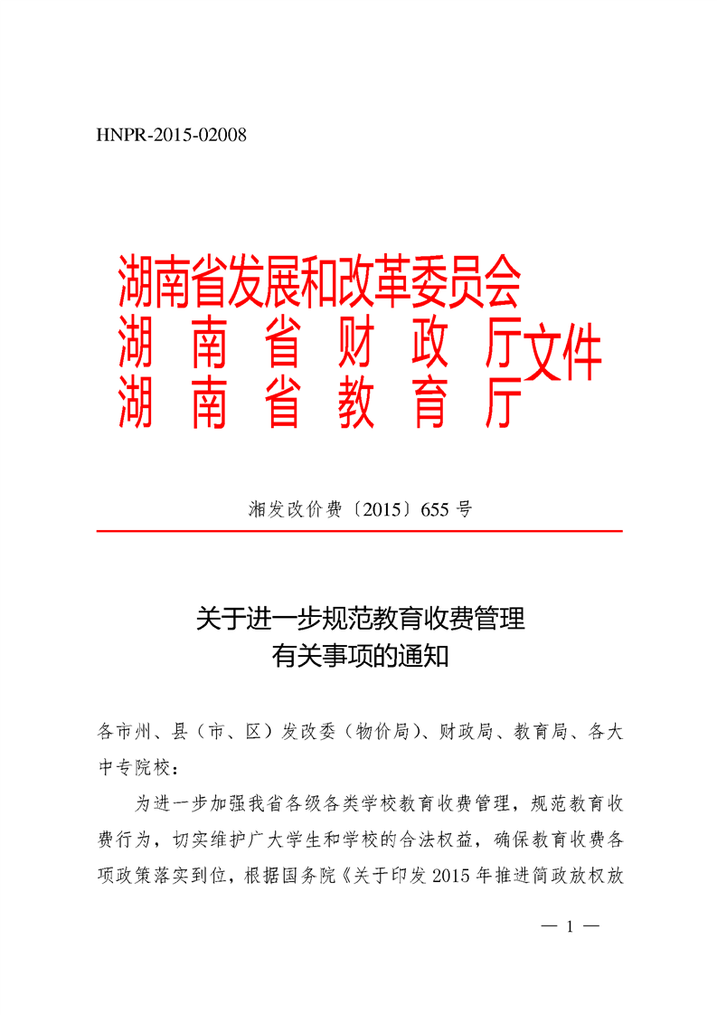 湘发改价费[2015]655号-关于进一步规范教育收费管理有关事项的通知