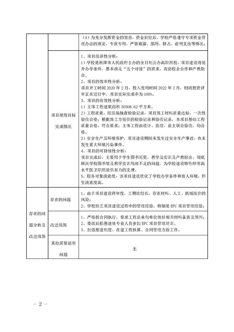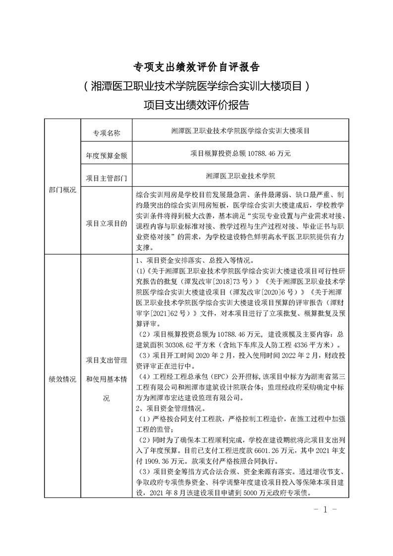 2021年医学综合实训大楼项目支出绩效自评