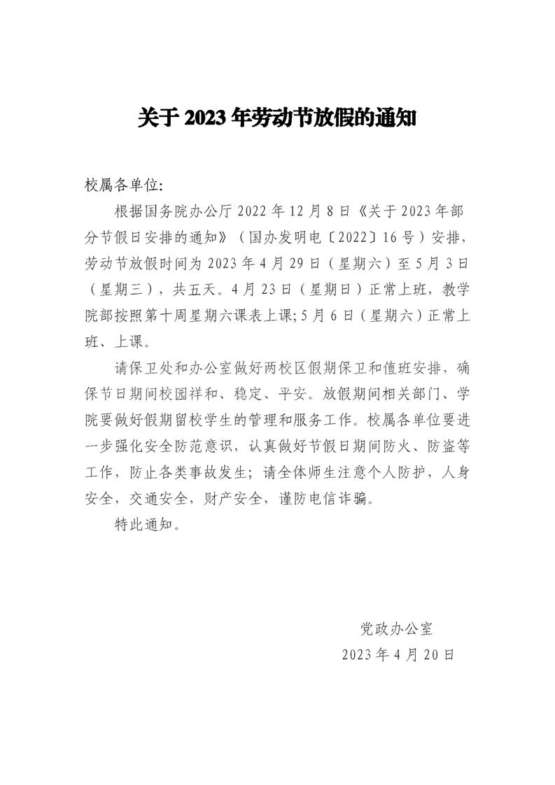 关于2023年劳动节放假调休的通知