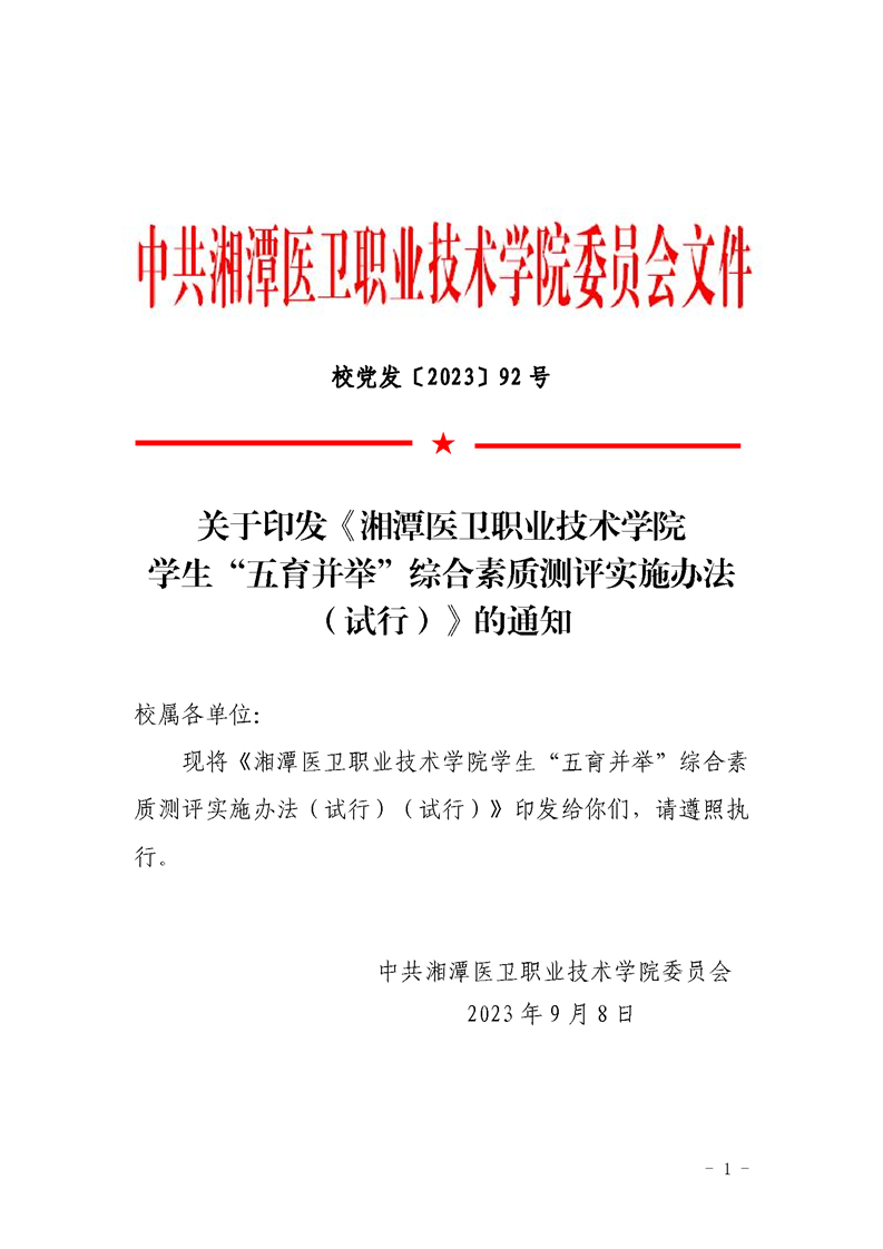校党发〔2023〕92号 半岛(中国)学生“五育并举” 综合素质测评实施办法(试行)