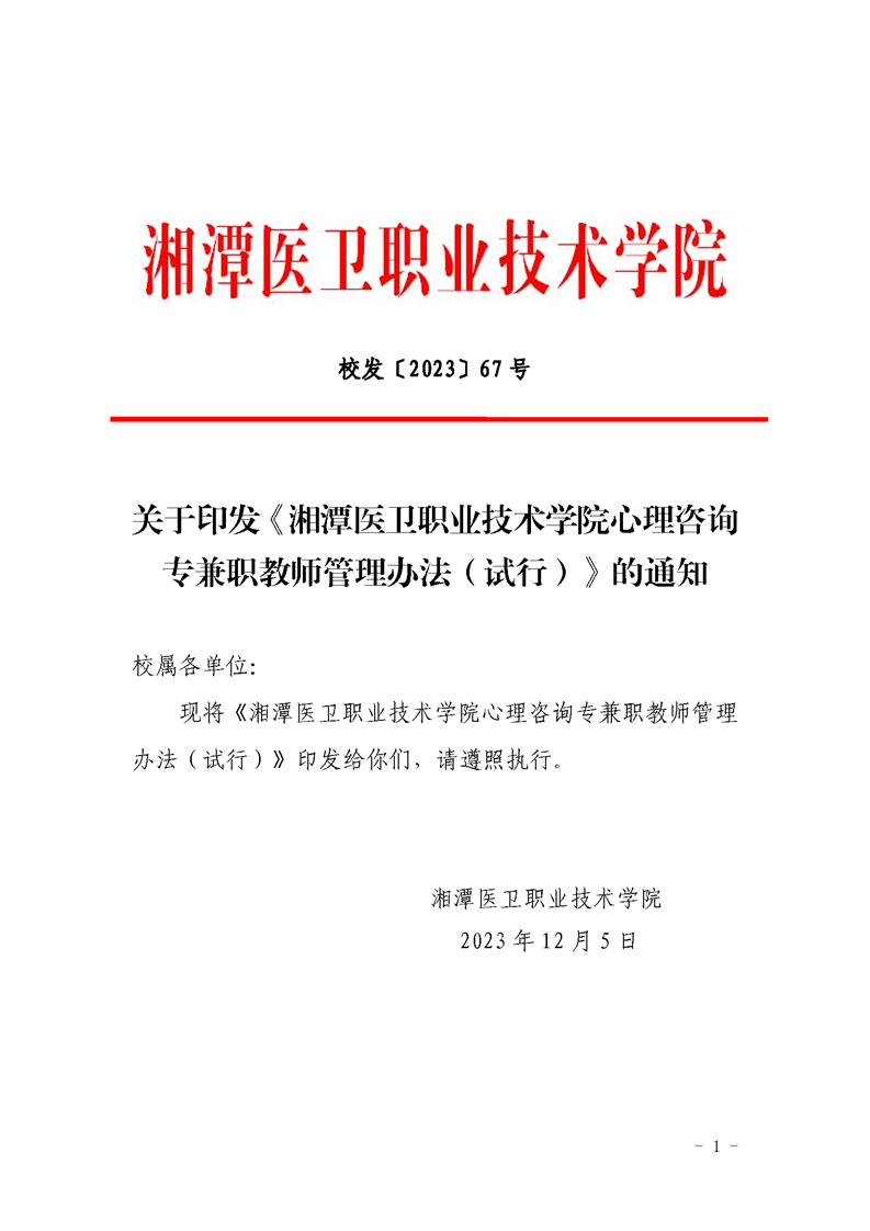 校发〔2023〕67号 半岛(中国)心理专兼职教师管理办法 (试行)