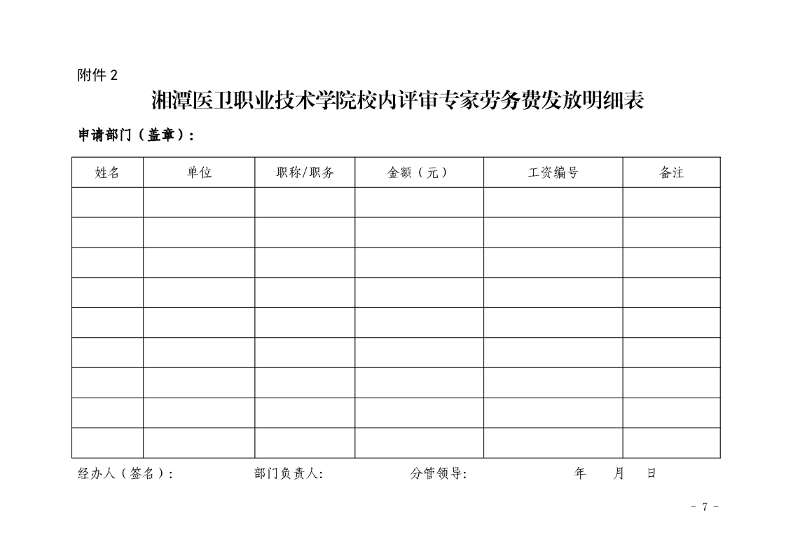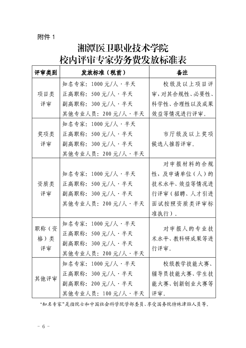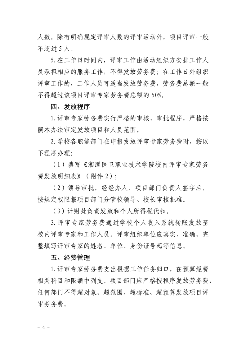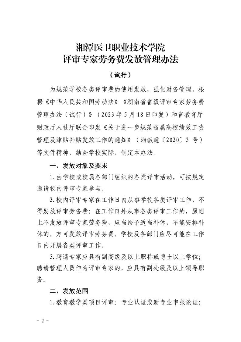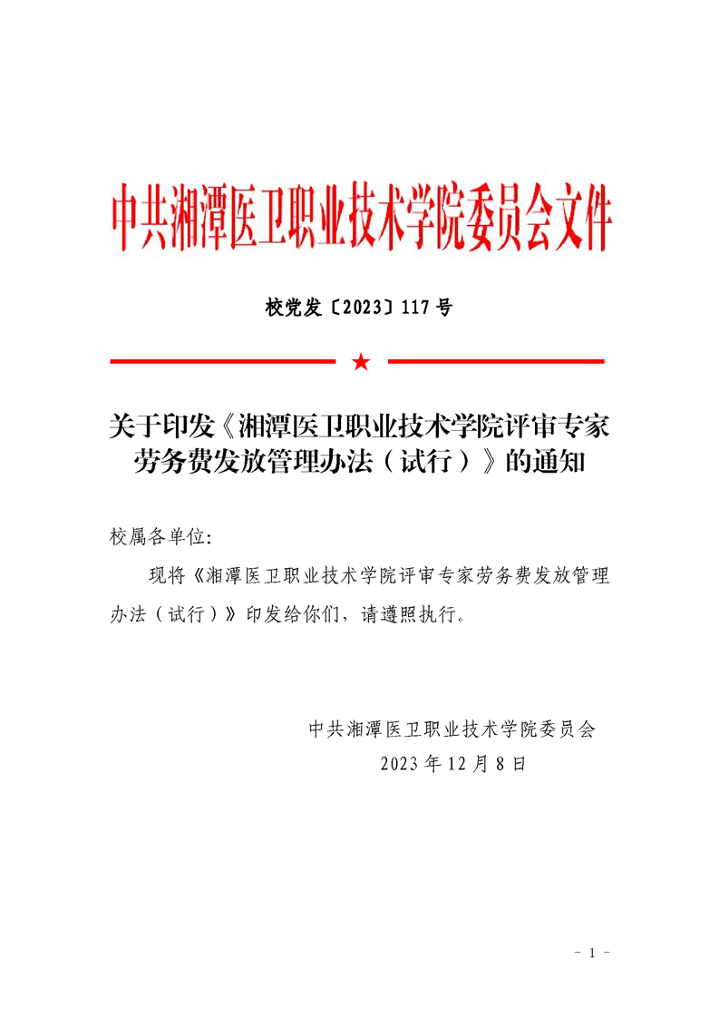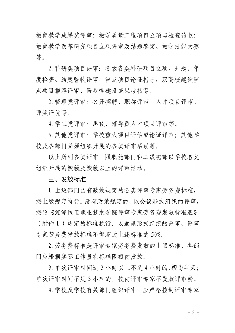 校党发〔2023〕117号 湘潭医卫职院专家评审劳务费管理办法