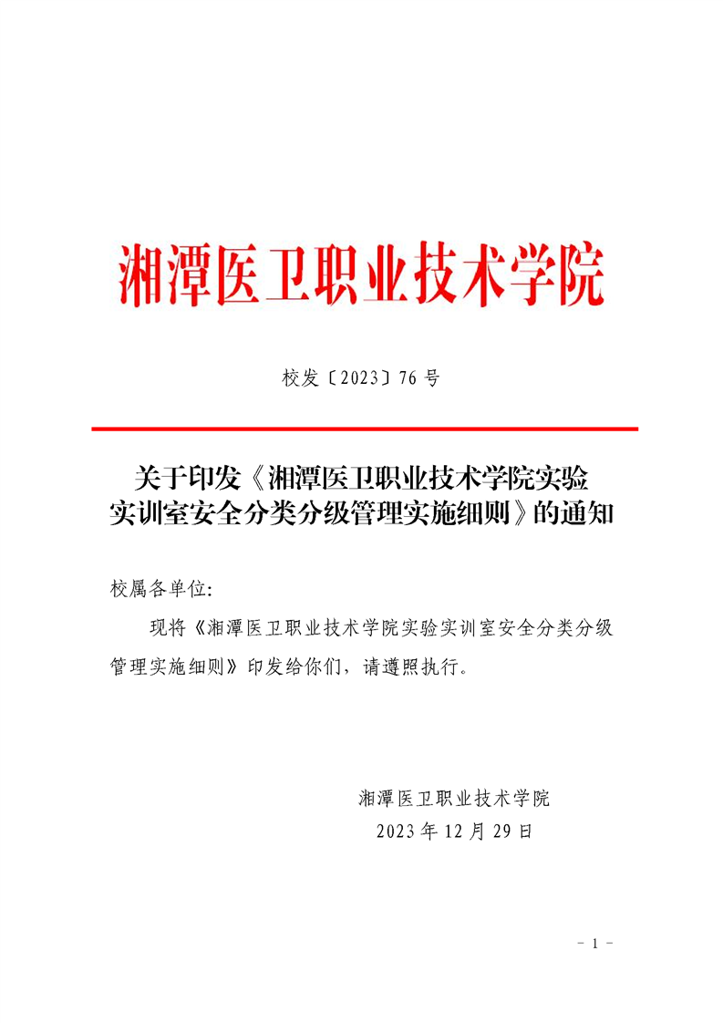 校发〔2023〕76号 半岛(中国)实验实训室安全分类分级管理实施细则