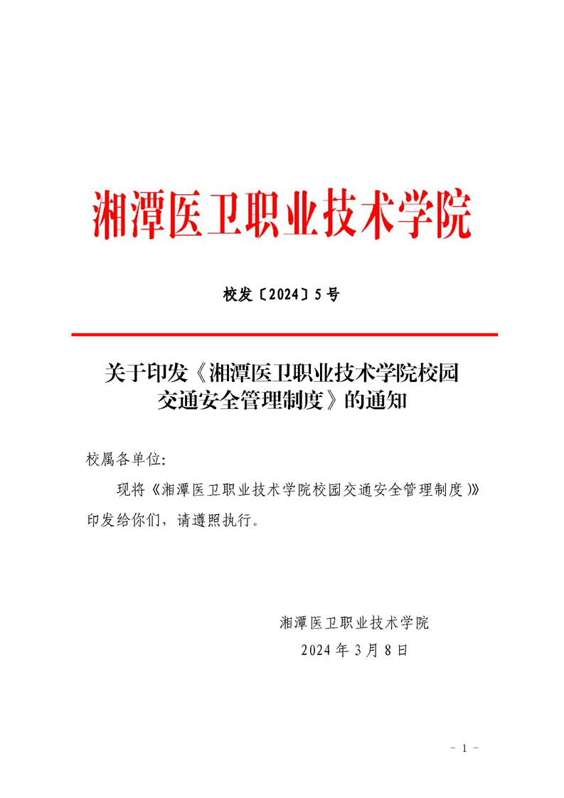 校发〔2024〕5号 半岛(中国)校园交通安全管理制度
