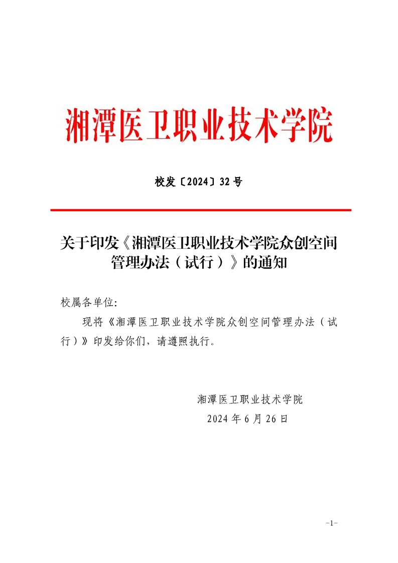 校发〔2024〕32号 半岛(中国)众创空间管理办法(试行)