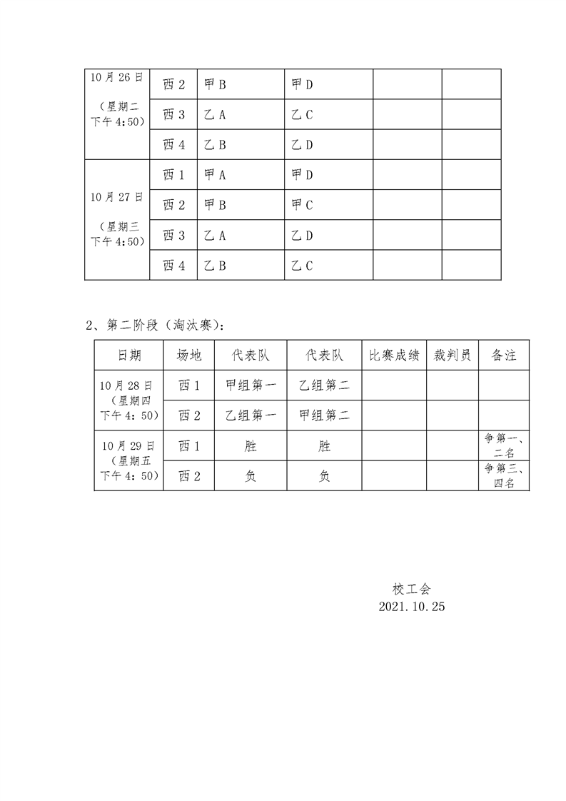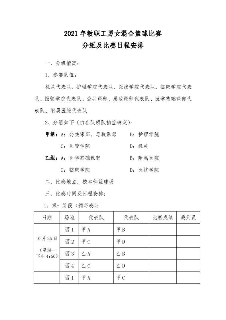 2021年教职工篮球赛比赛日程安排