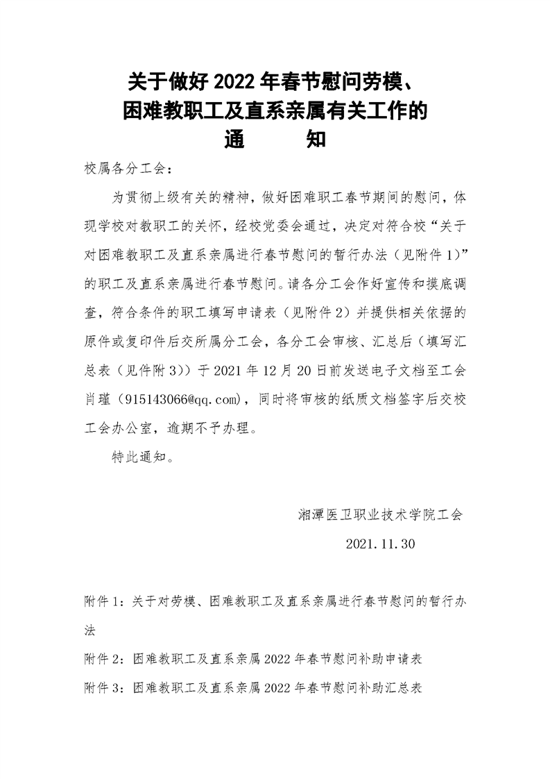 2022年春节慰问劳模、困难教职工及直系亲属的通知