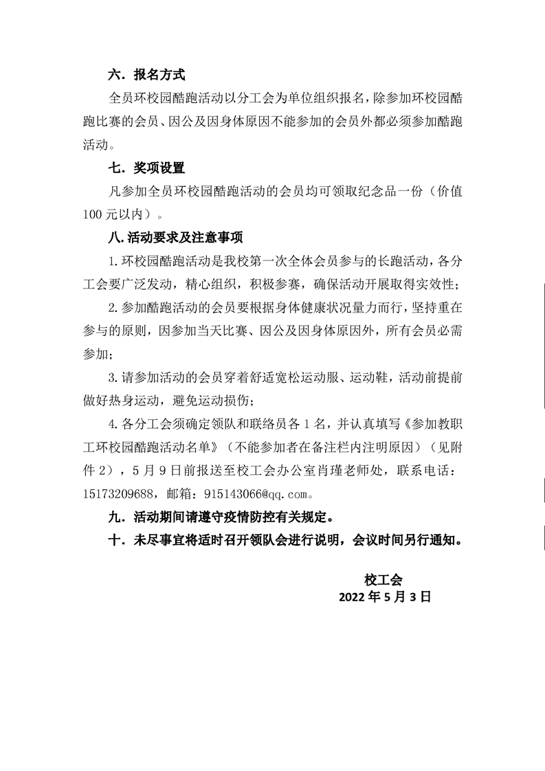 首届教职工环校园酷跑活动方案