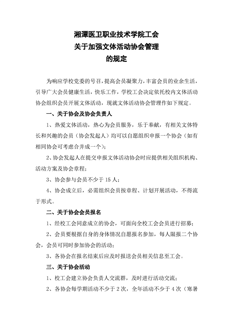 关于加强文体活动协会管理的规定