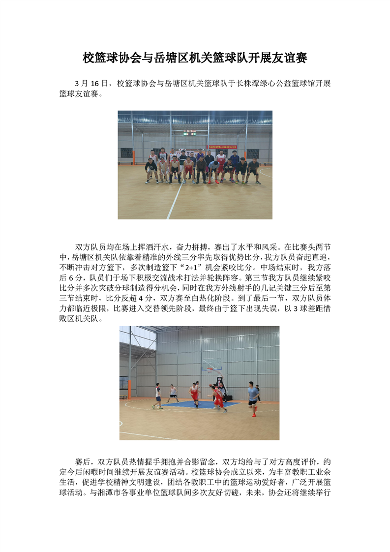 校篮球协会与岳塘区机关篮球队开展友谊赛