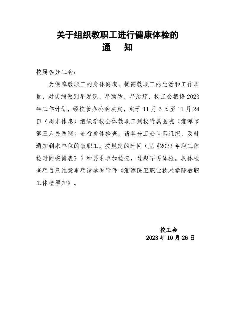 2023年教职工体检通知