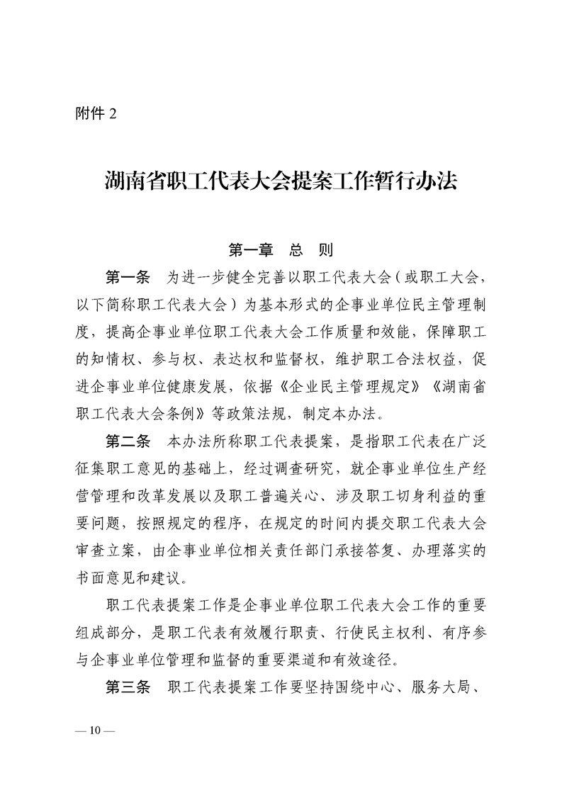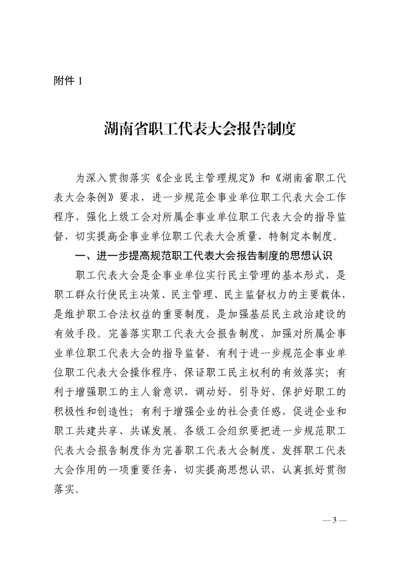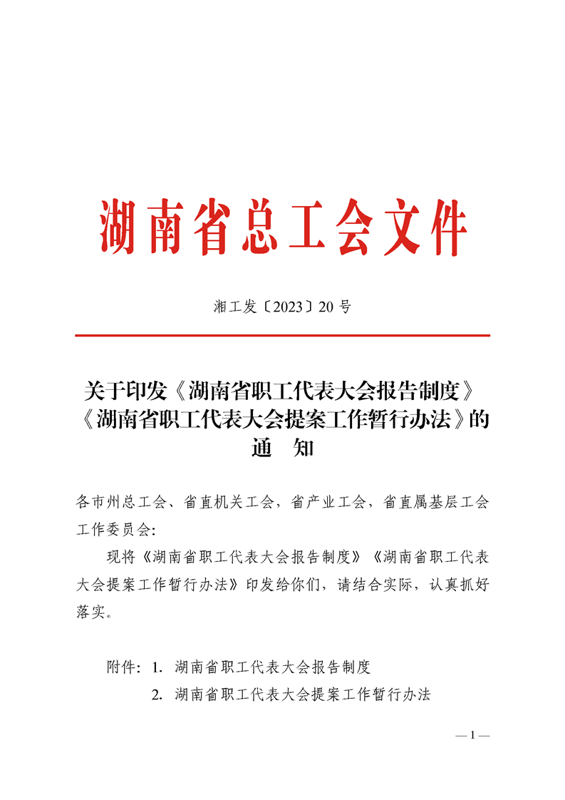 关于印发《湖南省职工代表大会报告制度》《湖南省职工代表大会提案工作暂行办法》的通知