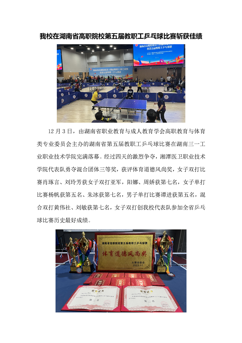 我校在湖南省高职院校第五届教职工乒乓球比赛斩获佳绩