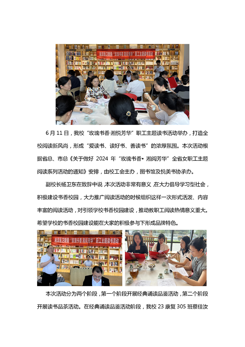 赴一场书香盛宴 我校举办“玫瑰书香·湘悦芳华”职工主题读书活动