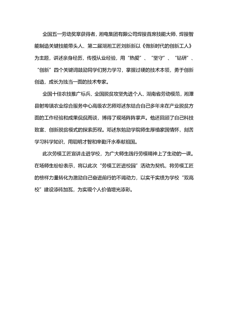 劳模工匠进校园 匠心传承创未来