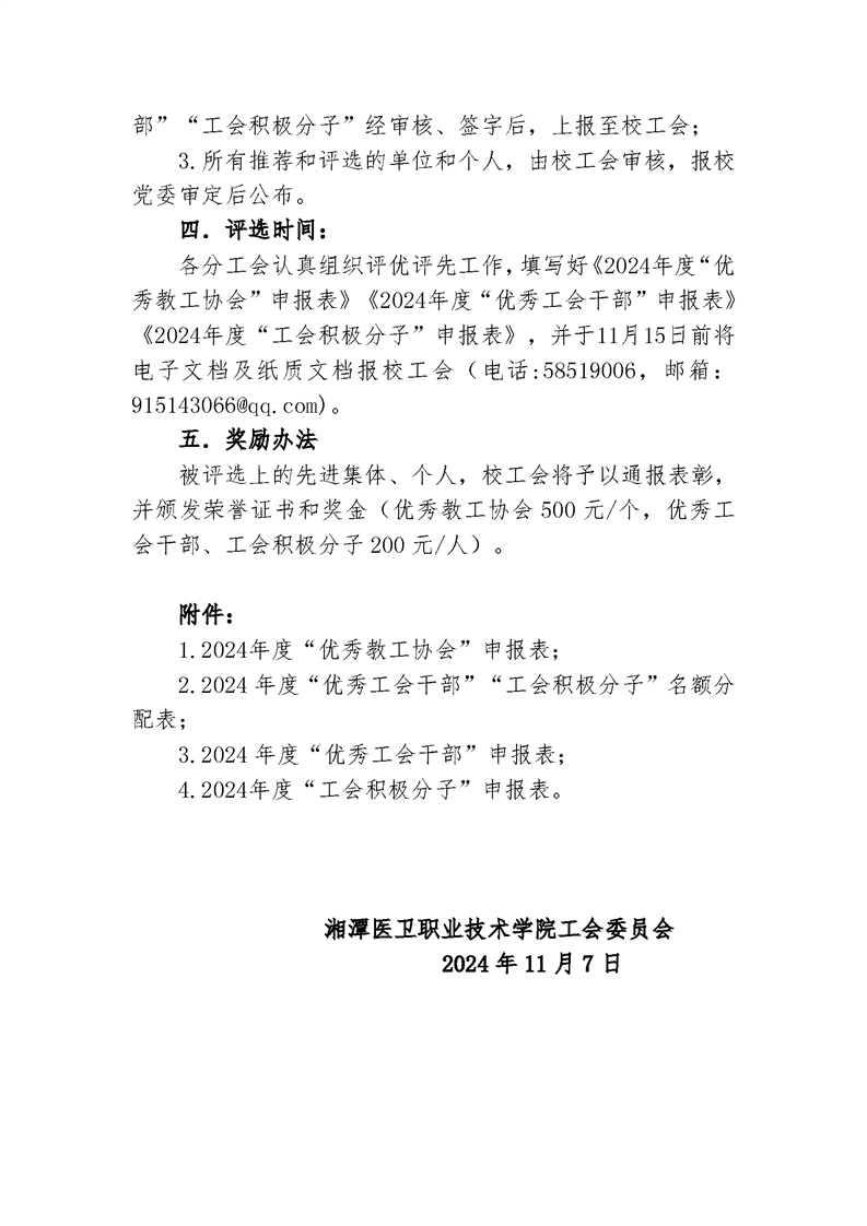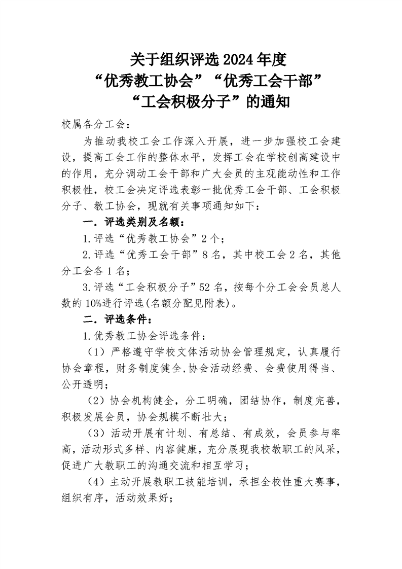 关于组织评选2024年度“优秀教工协会“”优秀工会干部”“工会积极分子”的通知
