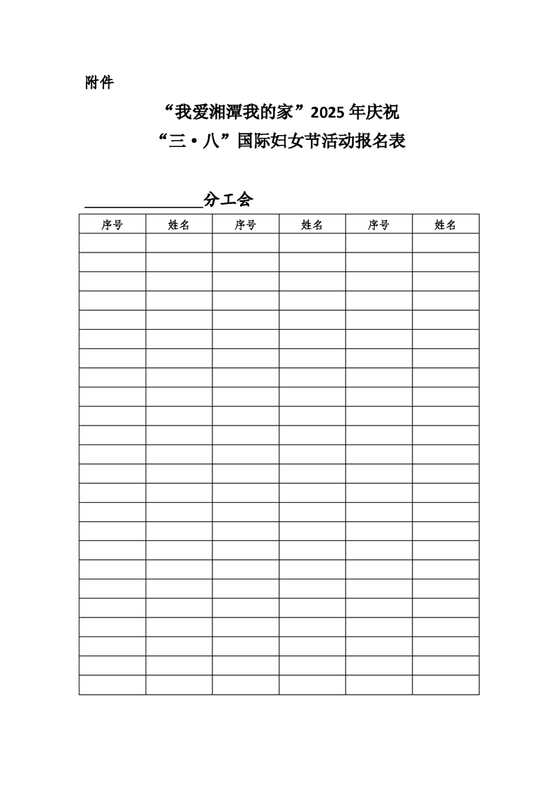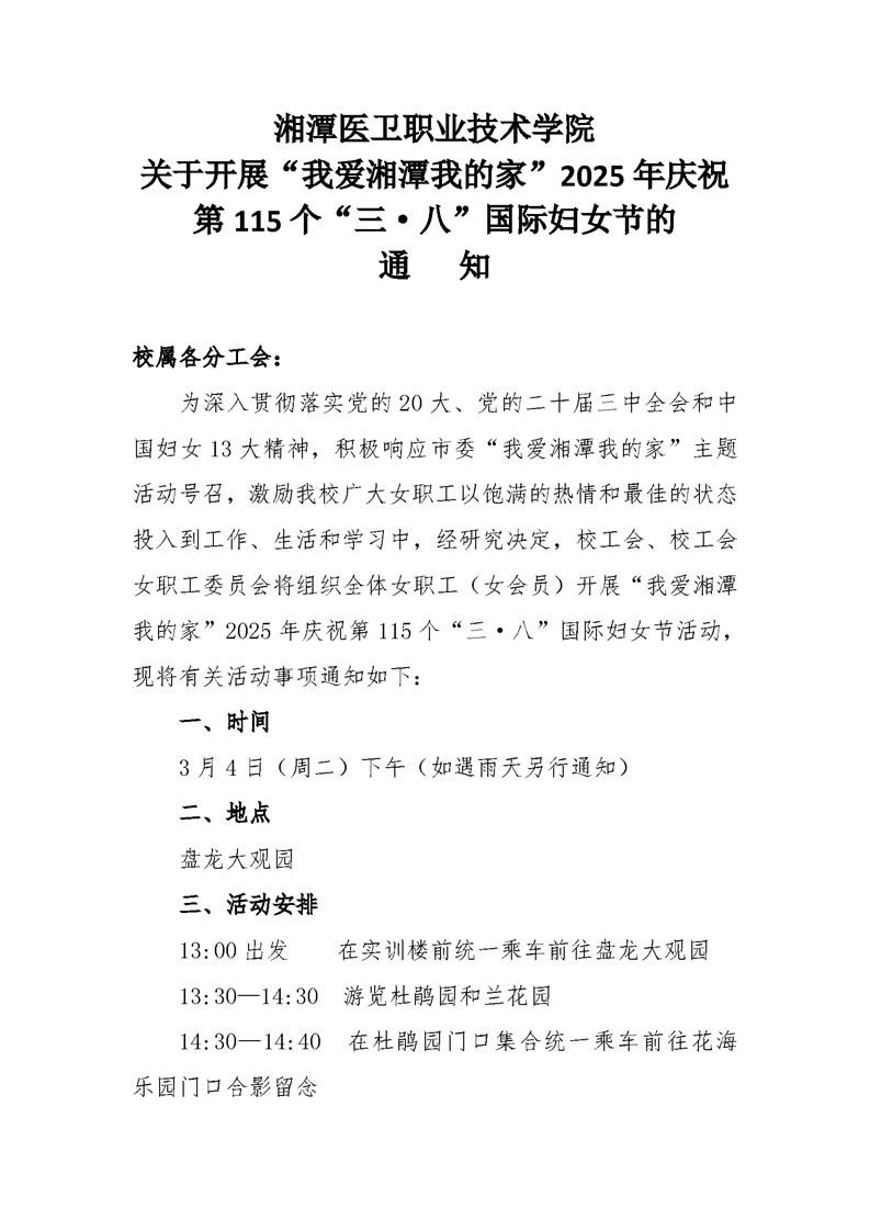关于开展“我爱湘潭我的家”2025年庆祝第115个“三八”国际妇女节的通知