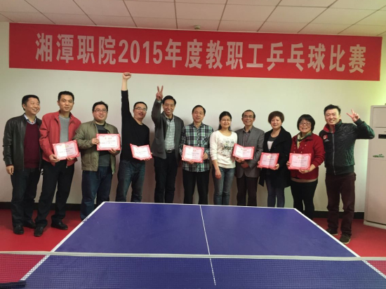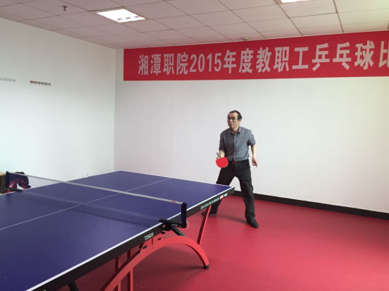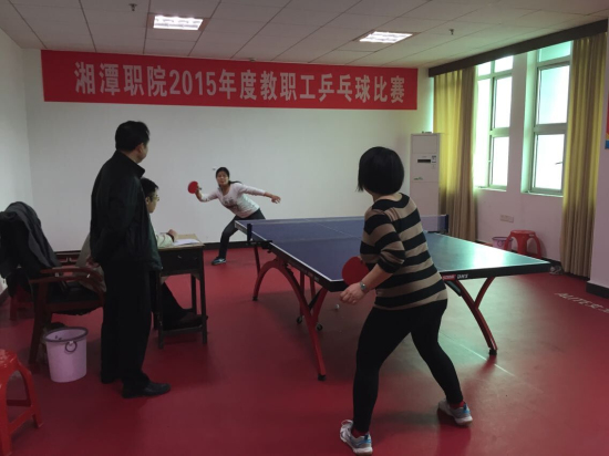 为丰富我院教职工的业余文化生活,加强教职工之间的交流,推动群众性体育活动的开展,促进广大教职工的健康水平不断提高,湘潭职业技术学院2015年度教职工乒乓球赛,于3月23日晚上7:00正式开赛。此次活动本着“重在参与,强身健体”的宗旨,会员们自主报名,全院共有126名队员参加比赛。比赛设男子单打和女子单打两个项目。在比赛组委会的认真组织下,经过为期一周的激烈角逐,于3月29日落下帷幕。最终,黄伟社、唐龙、李君、万红、谭进、许卫、龙小波、赵闽分获男子单打前八名;朱冰、杨帆、陈安丽、李利辉、李莹、刘敏、凌畅、贺玉兰分获女子单打前八名。本次比赛得到了院领导的大力支持和高度重视,院党委书记杨南南同志、院长刘小波同志亲临比赛现场,给参赛队员加油助威。赛场上,气氛融洽,争夺激烈,裁判员公正裁决,队员们积极参与,展示了良好的道德风尚。通过乒乓球比赛,老师们不仅切磋了球艺,增进了友谊,同时也在一定程度上掀起了乒乓球热潮,进一步推动学院各项健身活动的全面开展。