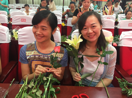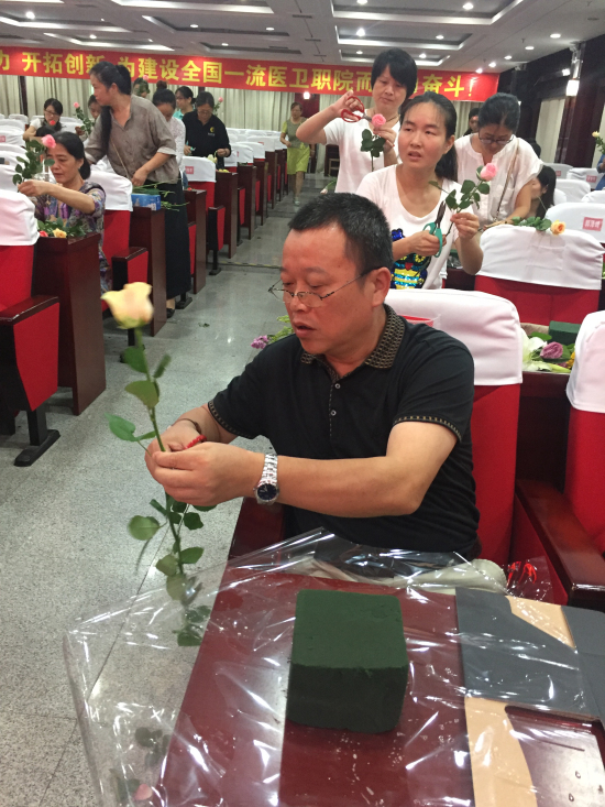 为丰富教职工业余文化生活,激发工作活力和凝聚力,提升教职工欣赏美、创造美的能力,在第33个教师节来临之际,校工会、校计财处联合建行河东支行于9月7日下午在护理楼一楼报告厅举办了一场花艺活动。 本次活动特邀专业花艺师为大家做插花技艺的讲解和指导,花艺师从插花工具和花的分类开始,介绍了花材、叶材的修剪处理,插花基本结构和基本造型技法,并为大家示范插花的步骤,教职工在花艺师的指导下,发挥自己对美的想象和创意,经过一个多小时的创作,一盆盆灿烂缤纷、新颖别致的插花作品“新鲜出炉”。老师们手捧着自己的得意之作,纷纷拍照留影,脸上洋溢着喜悦之情。 最后,花艺师对大家的作品进行了认真评选,赵璇获一等奖,陈丹、罗洁获二等奖,谭萍、贺艳、朱庭被评为三等奖。