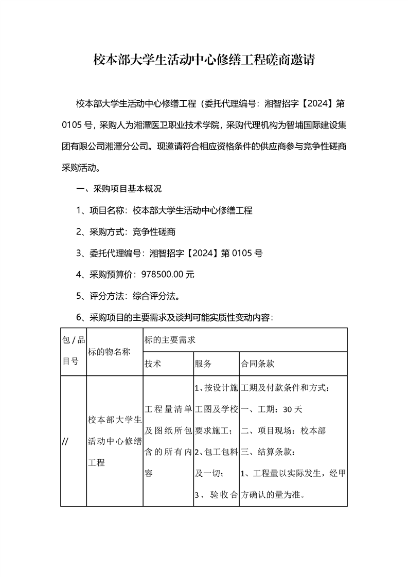 校本部大学生活动中心修缮工程磋商邀请