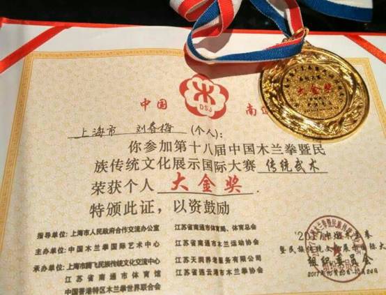 刘春梅老师参加第十八届中国木兰拳暨民族传统文化展示国际大赛荣获“传统武术”个人“大金奖”