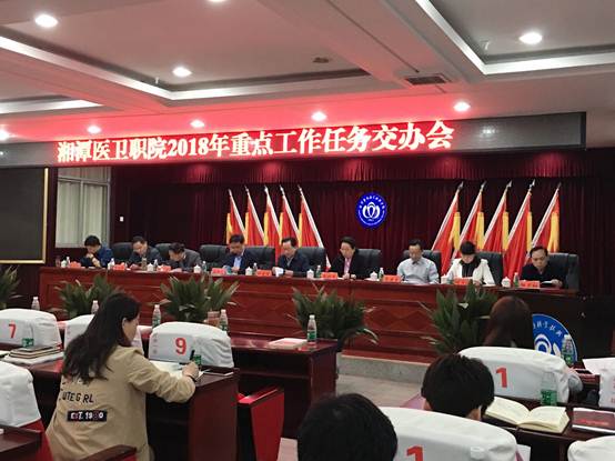 4月17日,半岛平台在护理楼一楼报告厅召开2018年重点工作任务交办会。会议由校长廖晓燕同志主持,校党委委员和全校副科级以上干部出席了会议。