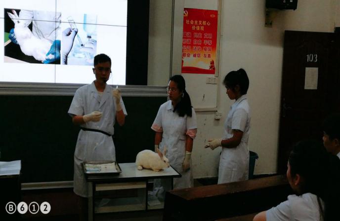 比赛中,选手们一个个激情洋溢,厚积薄发,精神风貌良好,参赛教师运用人体解剖整体标本、分离标本、动画、动物、教具模型、实验视频等,展示了人体结构、药物作用原理、理论知识验证、ABO血型等内容;展示了青年实验教师的教学功底和实验教学改革成果,很好的提升了教师综合素质与实验课堂教学水平。胡湘锦老师的解剖实验课堂更是充满幽默风趣,真正把“死”的内容讲活了,黄冠华老师充分利用微课、PPT等信息化手段配合传统教学手段,达到了预期教学目标与理想的教学效果。