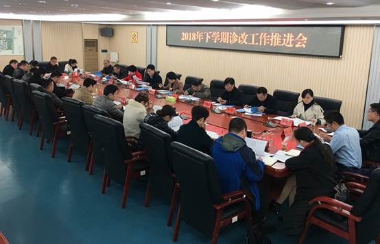 11月14日下午,半岛平台2018年下学期诊改工作推进会在护理楼八楼会议室召开。会议由校长廖晓燕主持,党委副书记左泽文、各相关部门、教学院(部)部负责人和质管办人员参加了会议。
