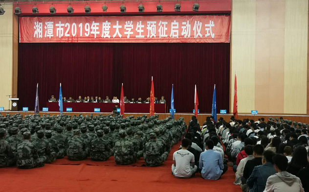 在征兵工作会议前,2019年全市大学生预征启动仪式议程在湖南工程学院室内体育馆举行。湘潭军分区司令员贺建、市政府副秘书长彭术龙等出席启动仪式,来自驻潭十所高校的3000多名师生参加了此次活动。我校武装部带领18医管301班学生和部分校卫队成员共50人参加了此次活动。