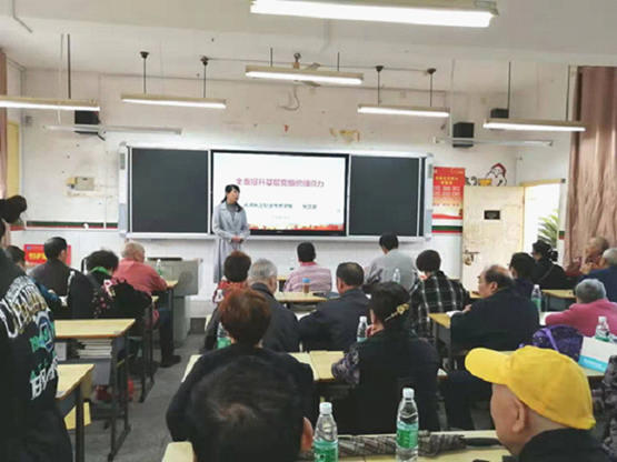 10月22日下午,半岛平台党委委员、副校长何文波在河西校区一教楼204教室以《全面提升基层党组织组织力》为题,给离退休党总支党员上了一堂精彩的党课。四十多名退休老党员和离退休办在职党员参加听课,其中最大年龄为88岁。