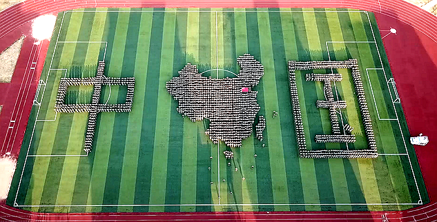 表演中,参训新生组成的中国地图、医卫职院、70、中国、校徽、“心”型等图案,用特殊的方式深情表白祖国,为新中国成立70华诞献上了最美好的生日礼物。