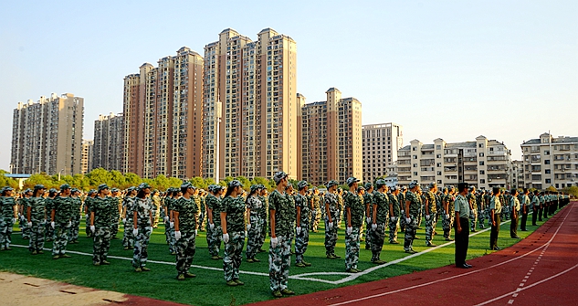 橙红烈日,蔚蓝方阵。会操表演在庄严的国歌声中正式拉开序幕。伴着激昂的《阅兵进行曲》,61个新生方队依次迈着整齐划一的步伐,喊着嘹亮的口号,精神饱满接受了校领导的检阅。在军训科目汇演中, 数字倒计时、数字方阵表演、手语励志操、拍拍操、音乐方阵、军体拳表演、战术方阵表演一一亮相,同学们身形矫健、拳脚敏捷,刚劲有力,一丝不苟的完成每一个动作,充分彰显了我校学子朝气蓬勃、奋发向上的精神风貌。