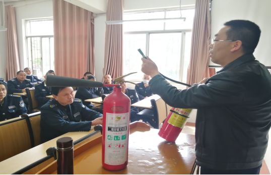 培训时保卫处长赵闽对保安人员提出五点工作要求:听指挥、守纪律、讲规范、强意识、尽职责。副处长张力丰为保安队员讲解了灭火器的正确使用方法。金盾保安公司姚劲松经理从诚实守信、爱岗敬业、团结互助、文明服务四个方面讲述保安服务活动中应遵循的行为准则和基本规范。会后保卫处胡桂荣老师指导保安队员进行队列操练、军容军姿训练。