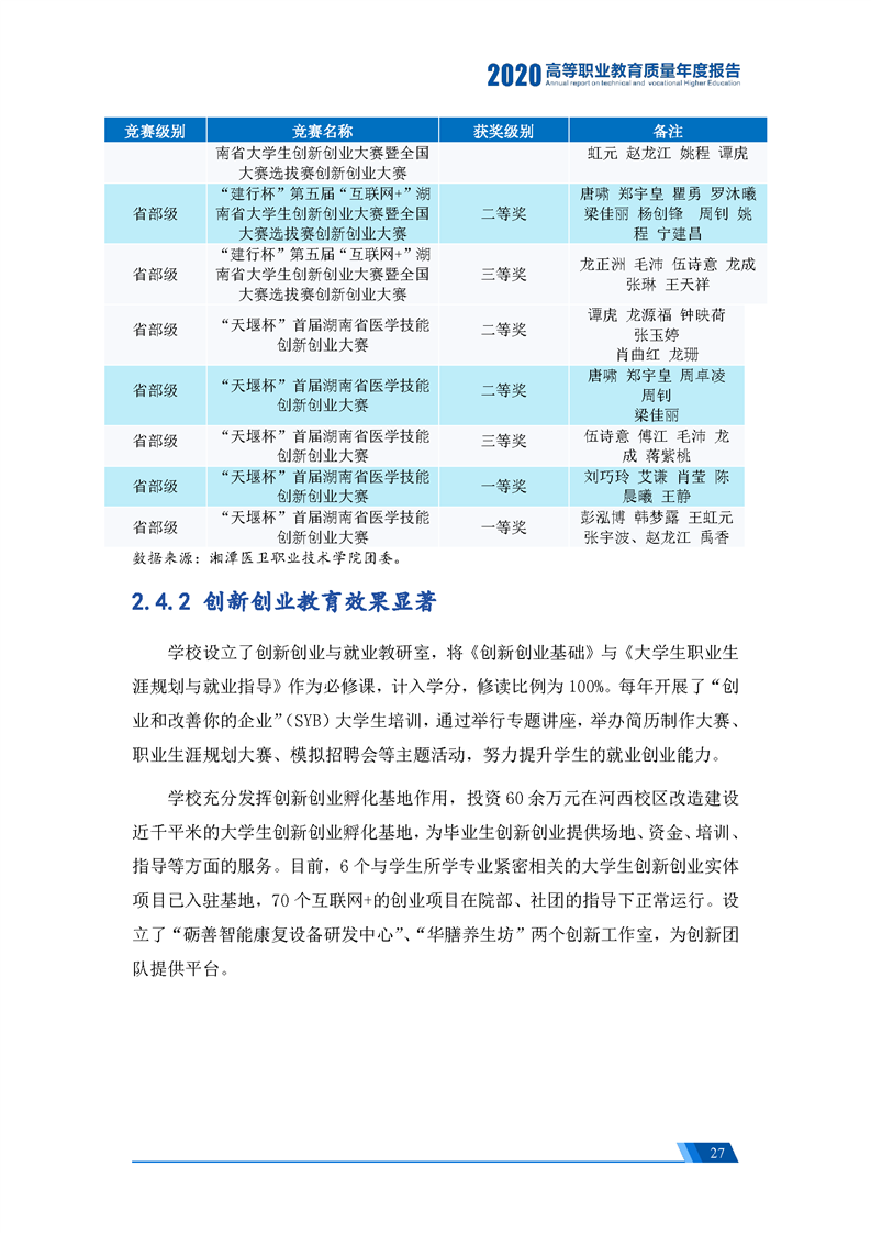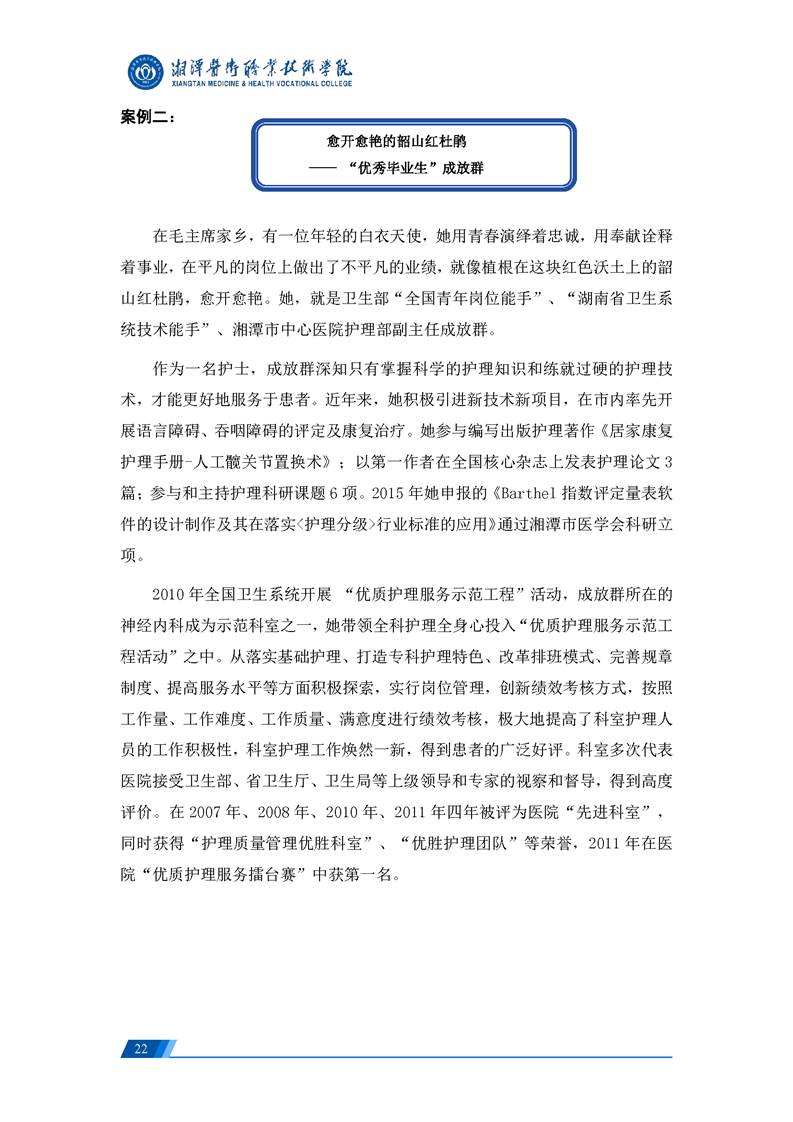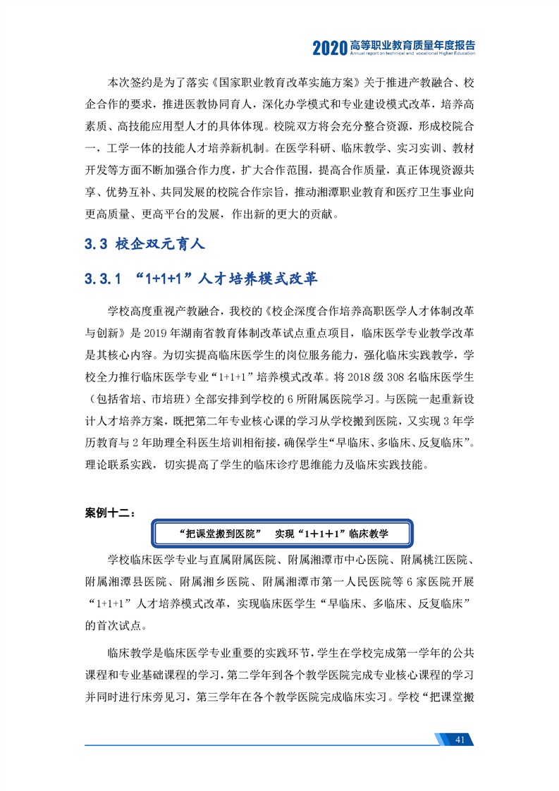 湘潭医卫职院附属医院参与半岛(中国)高等职业教育人才培养报告(2