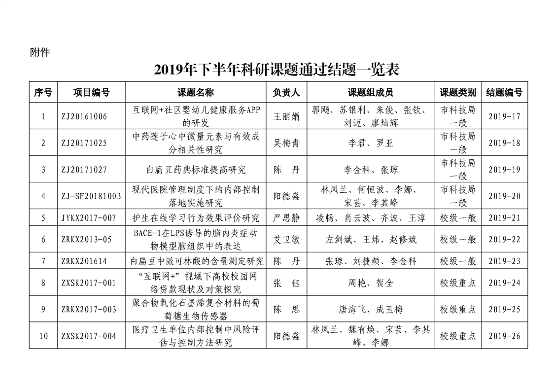 校发[2019]63号 关于2019年下半年科研课题结题情况的通报