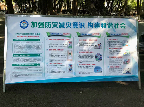 5月12日是我国第12个全国防灾减灾日,今年的主题是“筑牢防灾减灾救灾的人民防线”,国家设立防灾减灾日的目的有利于唤起社会各界对防灾减灾工作的高度关注,有利于全社会防灾减灾意识的普遍增强,有利于推动全民防灾减灾知识和避灾自救技能的普及推广,有利于各级综合减灾能力的普遍提高,最大限度地减轻自然灾害的损失。为了动员广大师生员工自觉、积极参与灾害应对,构建群防群治、专兼结合的工作机制,保卫处制作了防灾减灾日的宣传展板,并向各部门和各二级学院推送了微信版宣传资料。此次活动对提升广大师生员工应对灾害的能力起到了积极的促进作用。