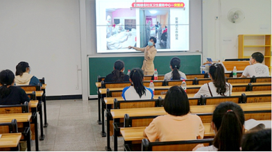 在护理楼202教室,支援湖北的抗“疫”的邓娟老师通过视频以及PPT的形式,向学生们分享自己在战“疫”一线的真实经历,为学生普及防疫知识,向同学们展现了抗疫志愿者们的爱国情怀和奉献精神,帮助学生树立勤奋学习,立志报国的理想信念。真实的经历、感人的细节,让在场的师生们深受感动。