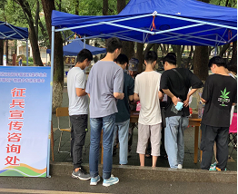 为落实6月29日教育部、军委国防动员部关于常态化疫情防控下兵员征集暨大学生征兵工作电视电话会议精神,在7月1日我校承办的2020年度医卫类毕业生暨岳塘区产教融合专场招聘会上,校武装部设置了专门的展位,针对毕业生开展征兵工作宣传。为取得好的宣传效果,武装部在展位悬挂了宣传横幅,制作了宣传展板,印制了专门的宣传资料用于发放。宣传活动得到了市军分区和岳塘区武装部的大力支持,市征兵办参谋黄耿、区武装部王起腾、区国教办翟静来到现场为毕业生进行咨询服务,收到了良好的效果,有三名毕业生现场进行了报名,部分学生表达了意向。