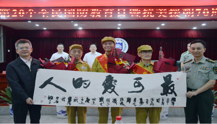 9月17日,湘潭市第20个全民国防教育日暨纪念中国人民志愿军抗美援朝出国作战70周年活动在我校报告厅举行。市委副书记、市全民国防教育委员会主任何俊峰、湘潭军分区司令员贺建、校党委书记刘建强、抗美援朝老战士代表、组宣部、学工处、武装部及师生代表200余人参加活动。