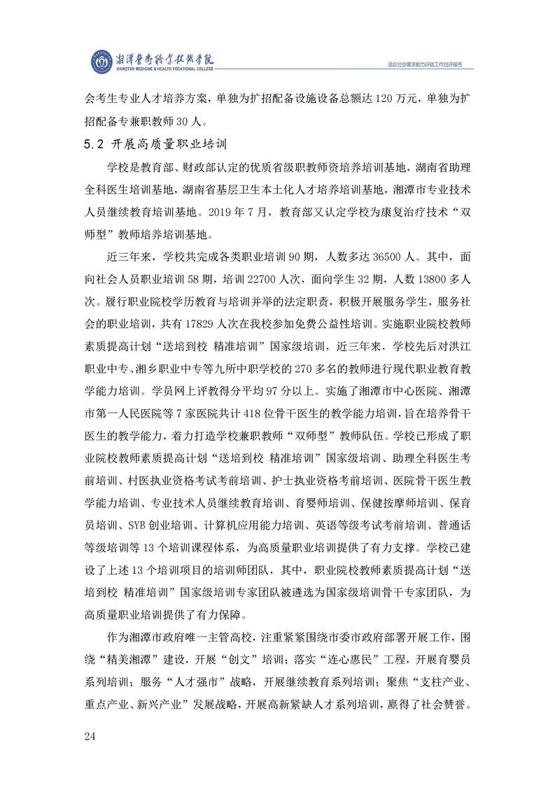 湘潭医卫职院附属医院参与半岛(中国)高等职业教育人才培养报告(2