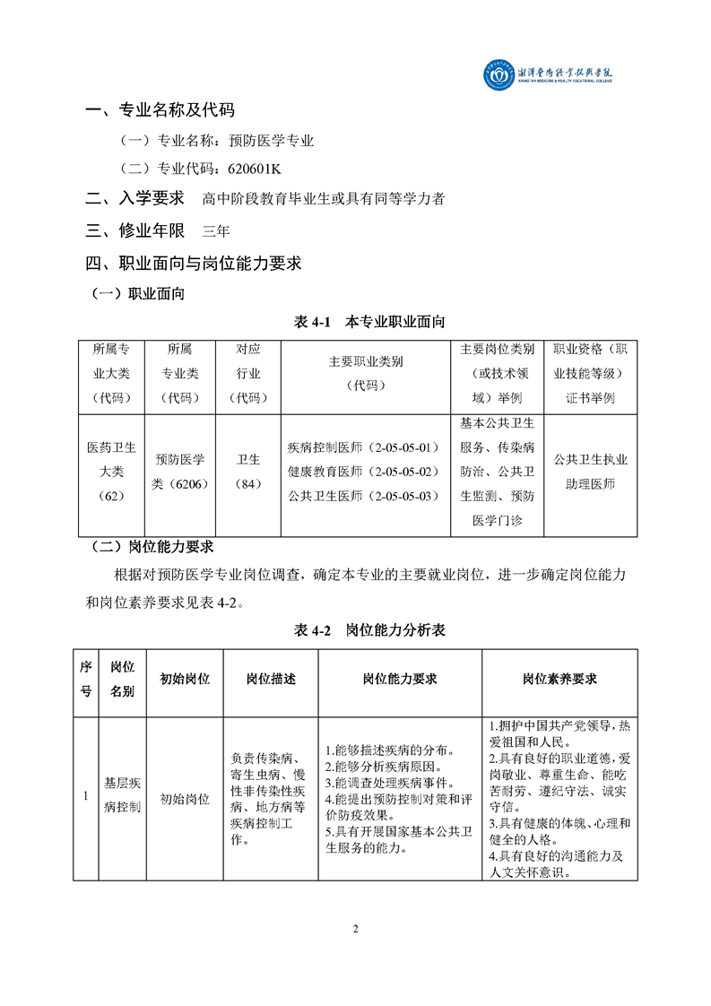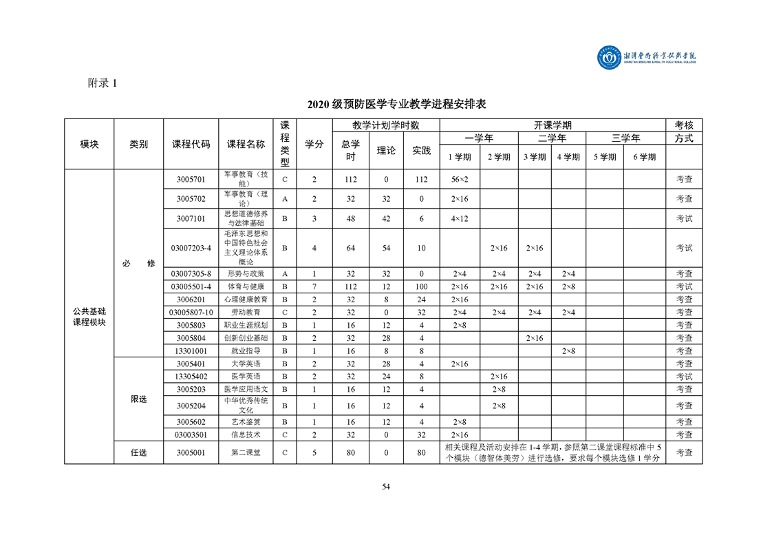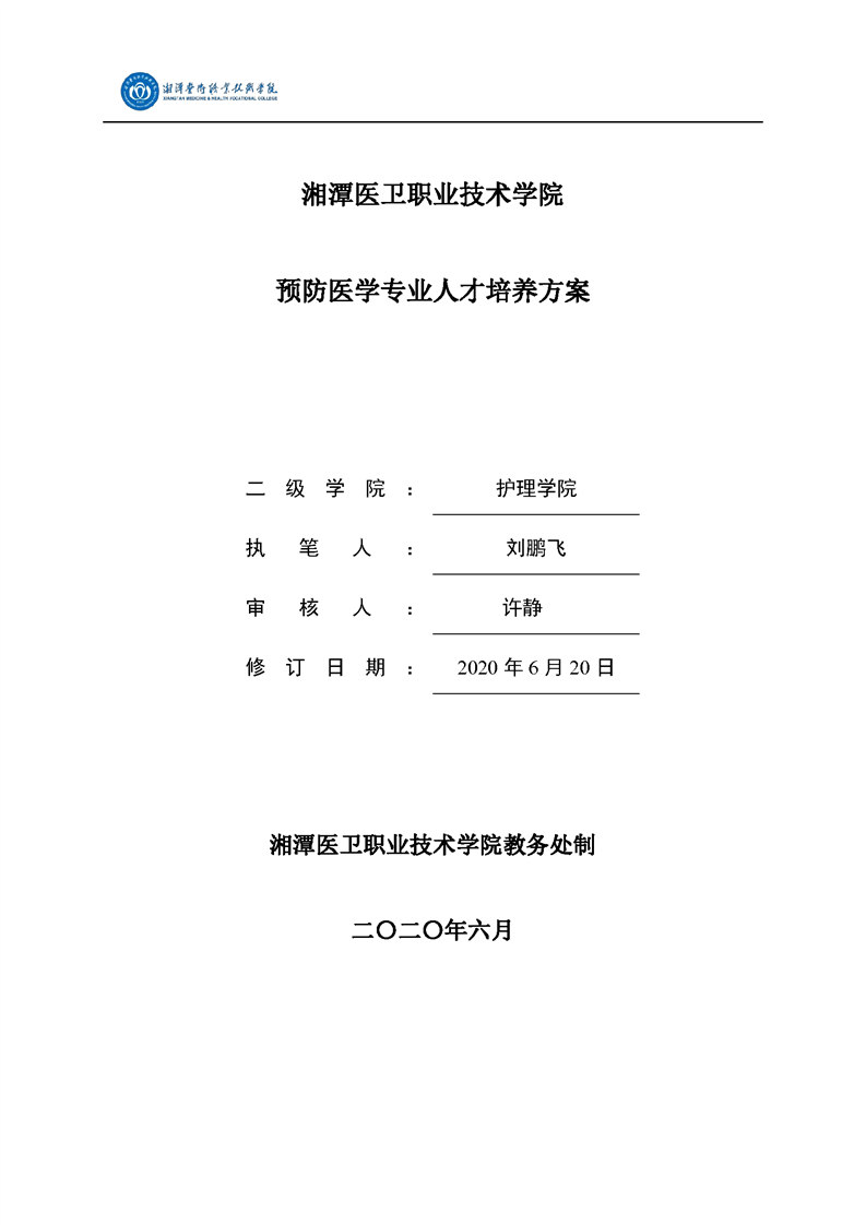 2020级预防医学专业人才培养方案