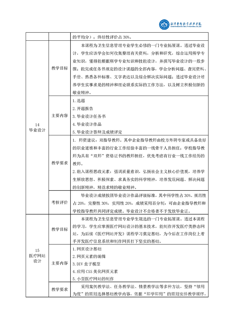 > 教务处 > 半岛(中国)专业人才培养方案 > 14卫生信息管理专业