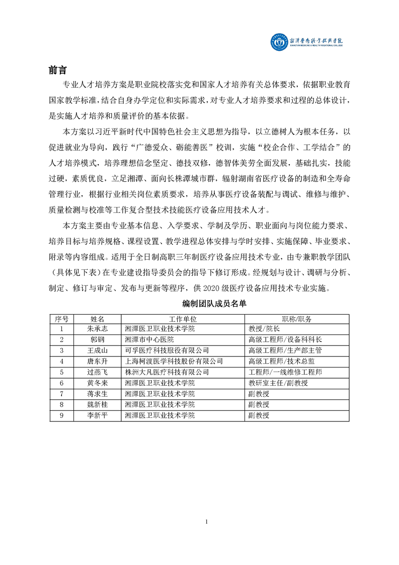 2020级医疗设备应用技术专业人才培养方案