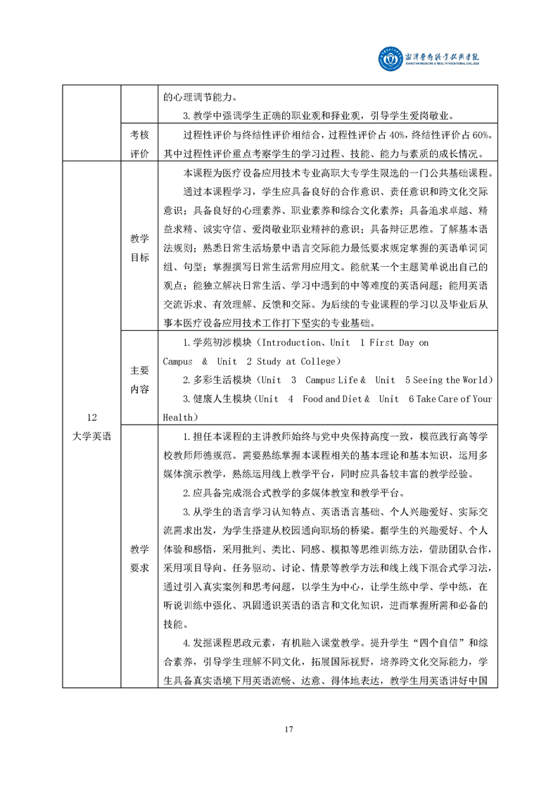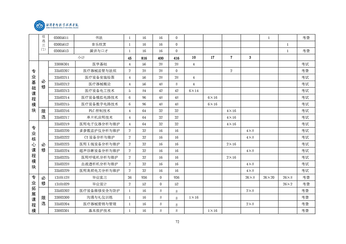 > 教务处 > 半岛(中国)专业人才培养方案 > 16、智能医疗装备技术专业