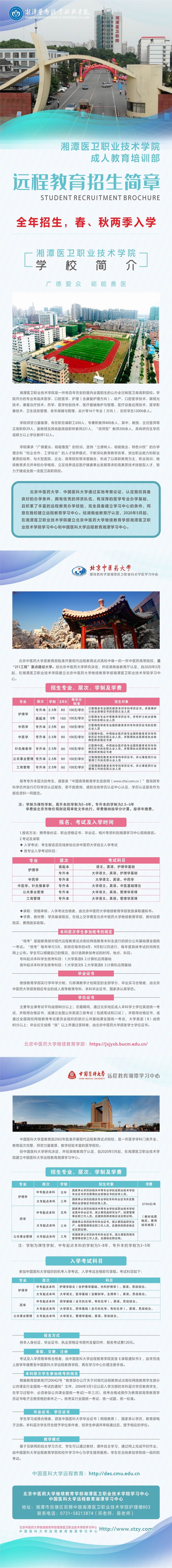 2020年秋季中国医科大学远程教育湘潭学习中心招生简章
