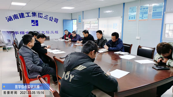 3月5日下午,后勤基建处在医学综合实训大楼项目部会议室组织召开2021年医学综合实训大楼第一次工地例会暨安全生产工作会,会议由后勤基建处处长张普强主持,副处长郑雄伟、基建维修科科长龚祖龄,监理单位、施工单位相关负责人参加。