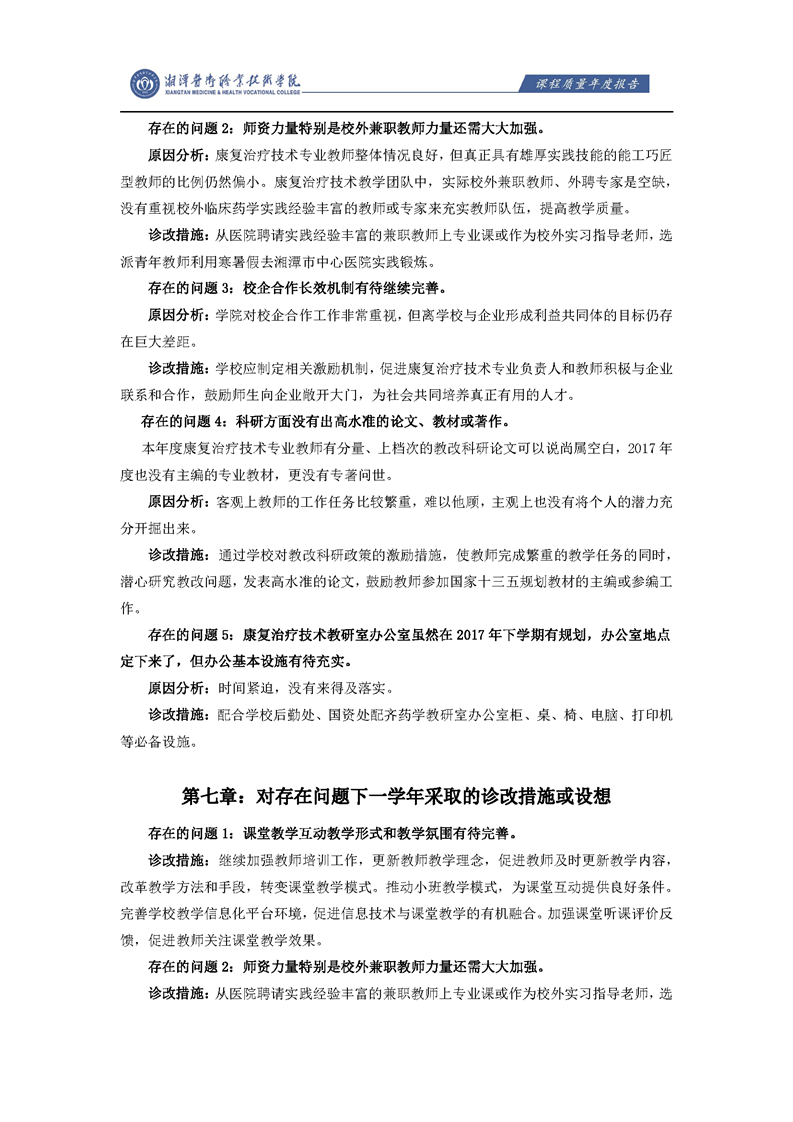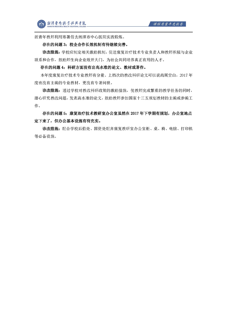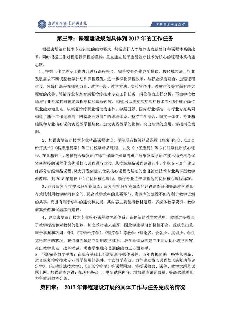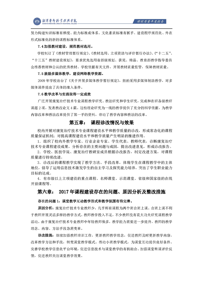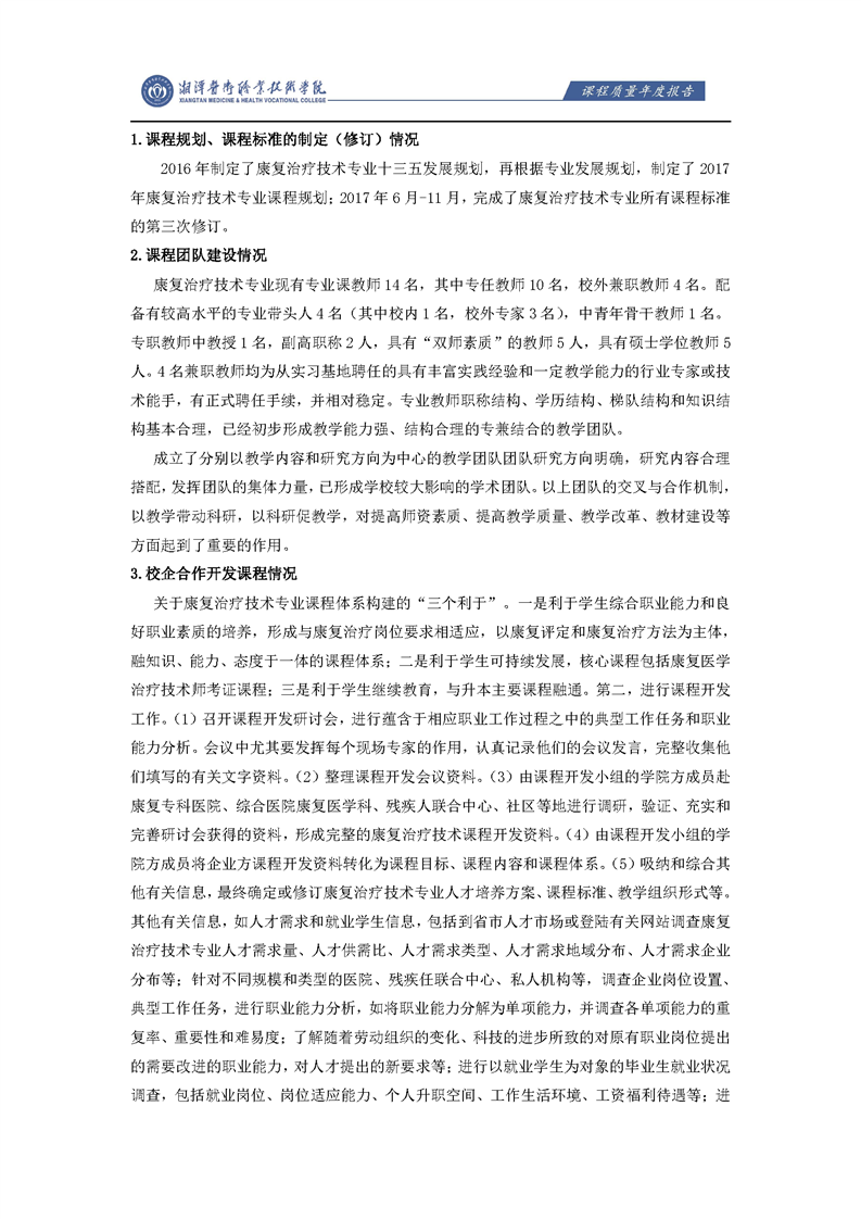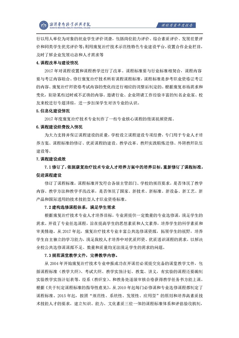2.2.4.1 2018年康复治疗技术专业课程质量年度报告