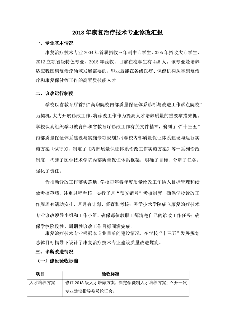 2.2.4.1 2018年康复治疗技术专业诊改报告