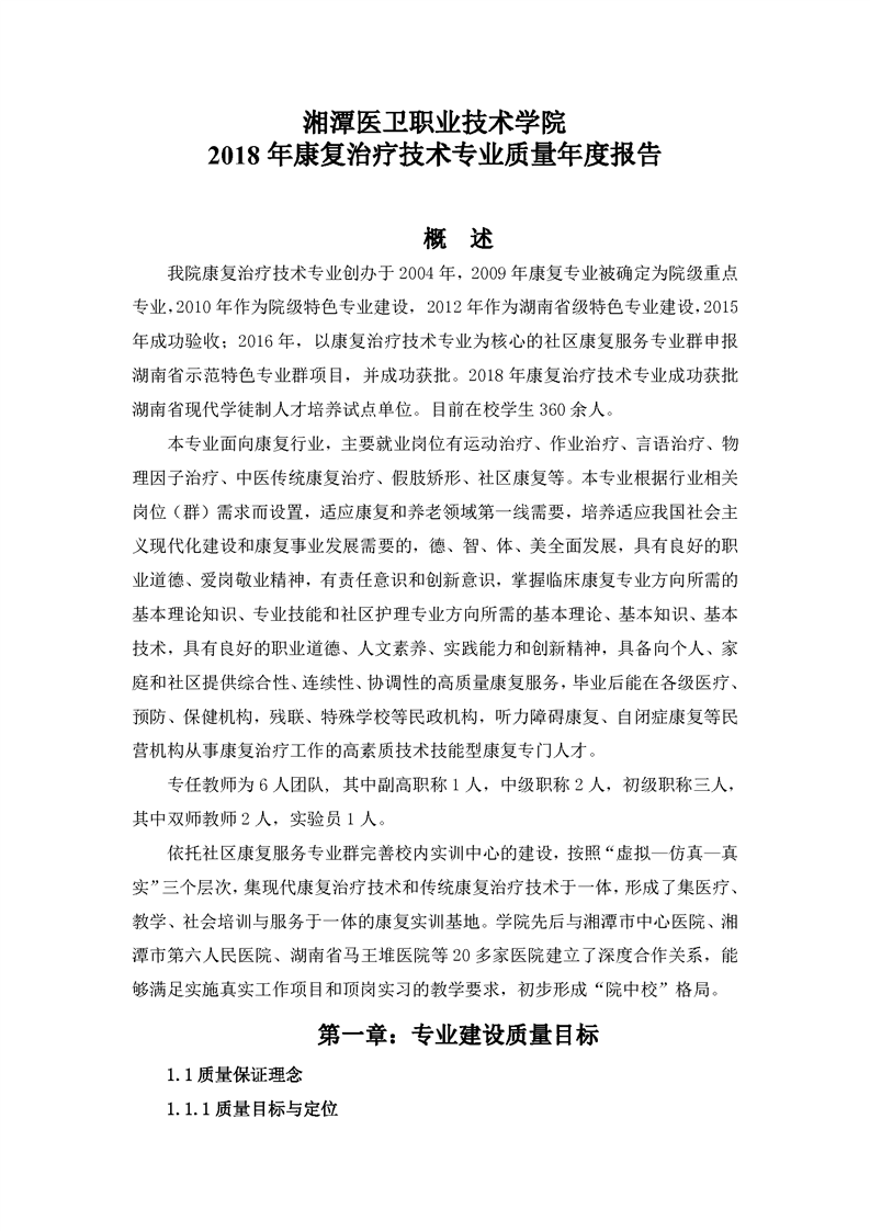 2.2.4.1 2018年康复治疗技术专业质量年度报告
